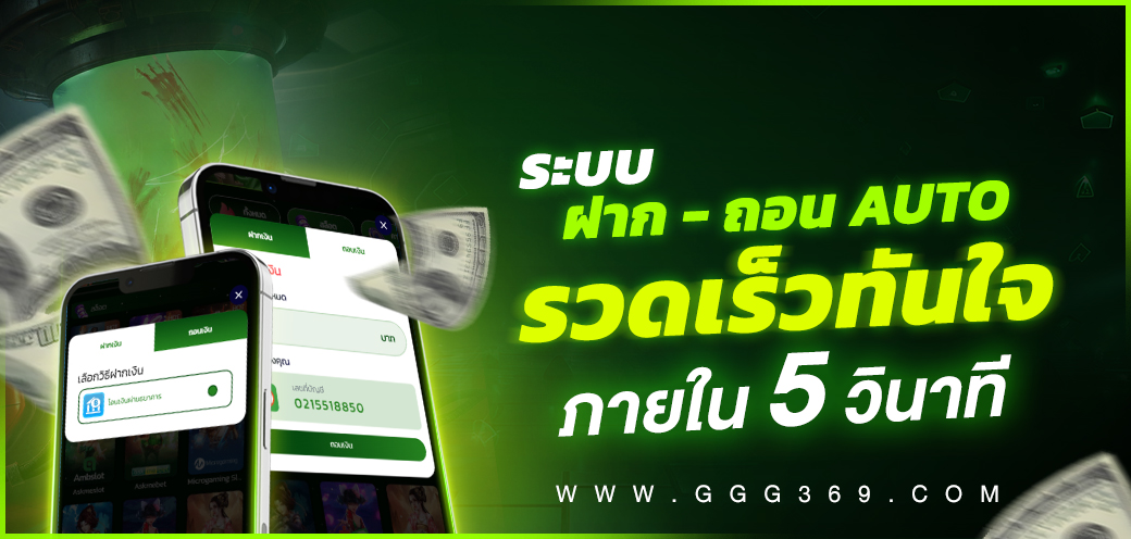 เพื่อนๆ ที่เคยเล่นเว็บพนันมาก่อนคงเข้าใจดีว่า การที่จะฝากหรือถอนเงินแต่ละครั้งนั้นเป็นเรื่องที่น่าปวดหัวไม่น้อย บางครั้งต้องรอนานเป็นชั่วโมง หรือแม้กระทั่งหลายวันกว่าจะได้เงิน แต่ที่ GGG369 เราใช้เทคโนโลยีล่าสุดในการพัฒนาระบบให้ทำงานอัตโนมัติแบบ 100% ใช้เวลาในการทำรายการเพียงไม่กี่วินาทีเท่านั้น